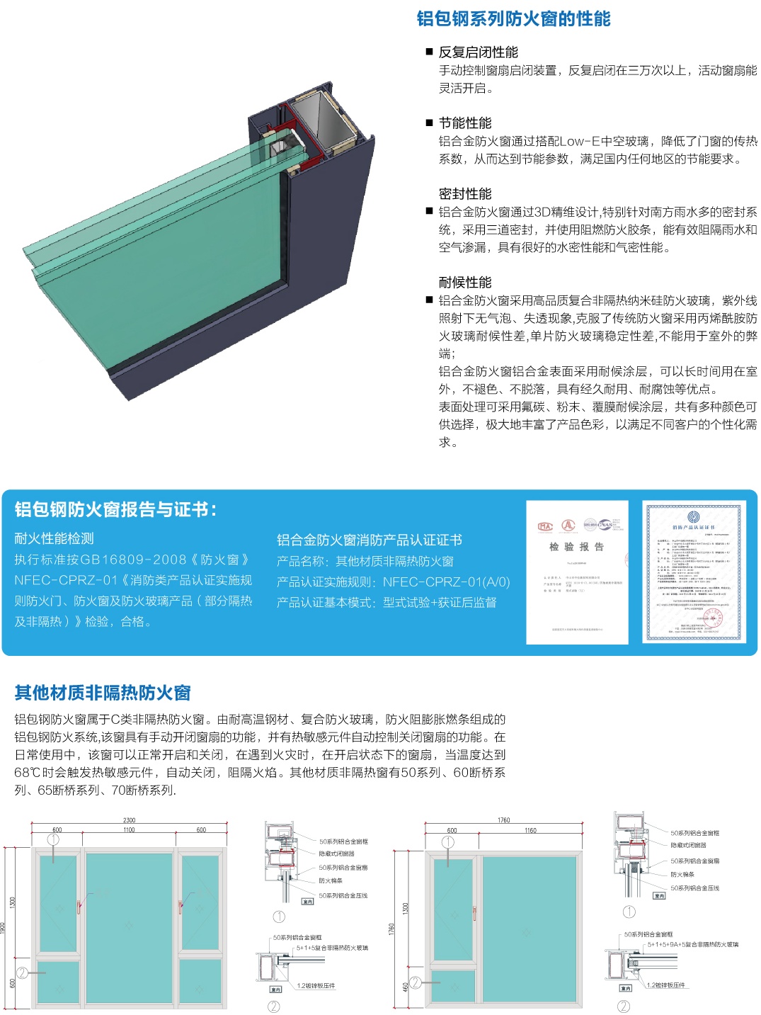 非隔熱防火窗