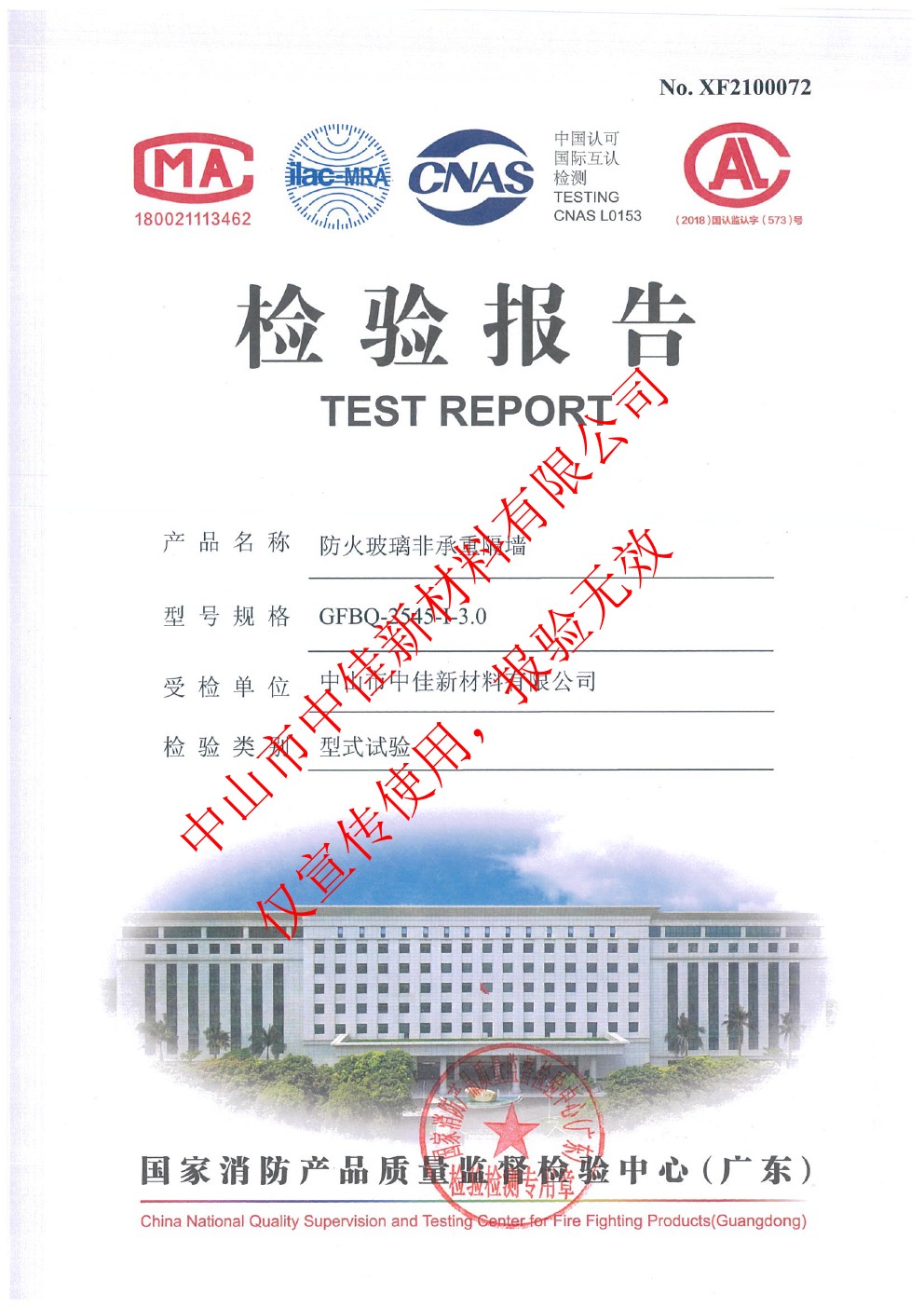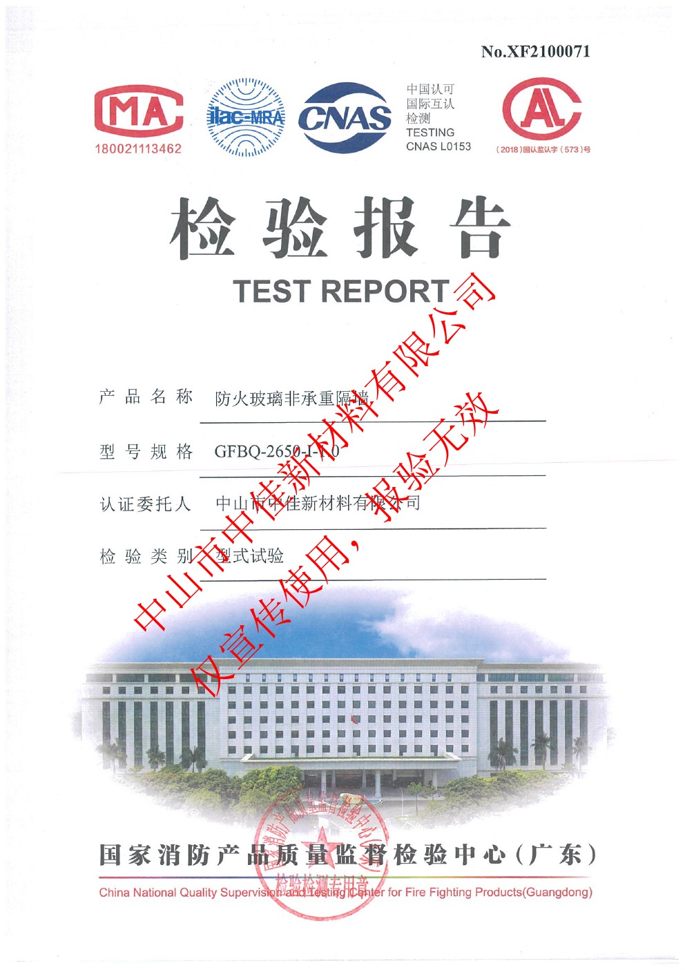 新突破!防火玻璃非承重隔墻通過3小時(shí)/1.5小時(shí)/1小時(shí)檢測(cè)報(bào)告
